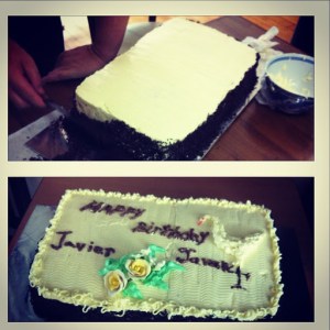 Here’s a sneak peak at the old-school cake he made from scratch for the boys tonight;